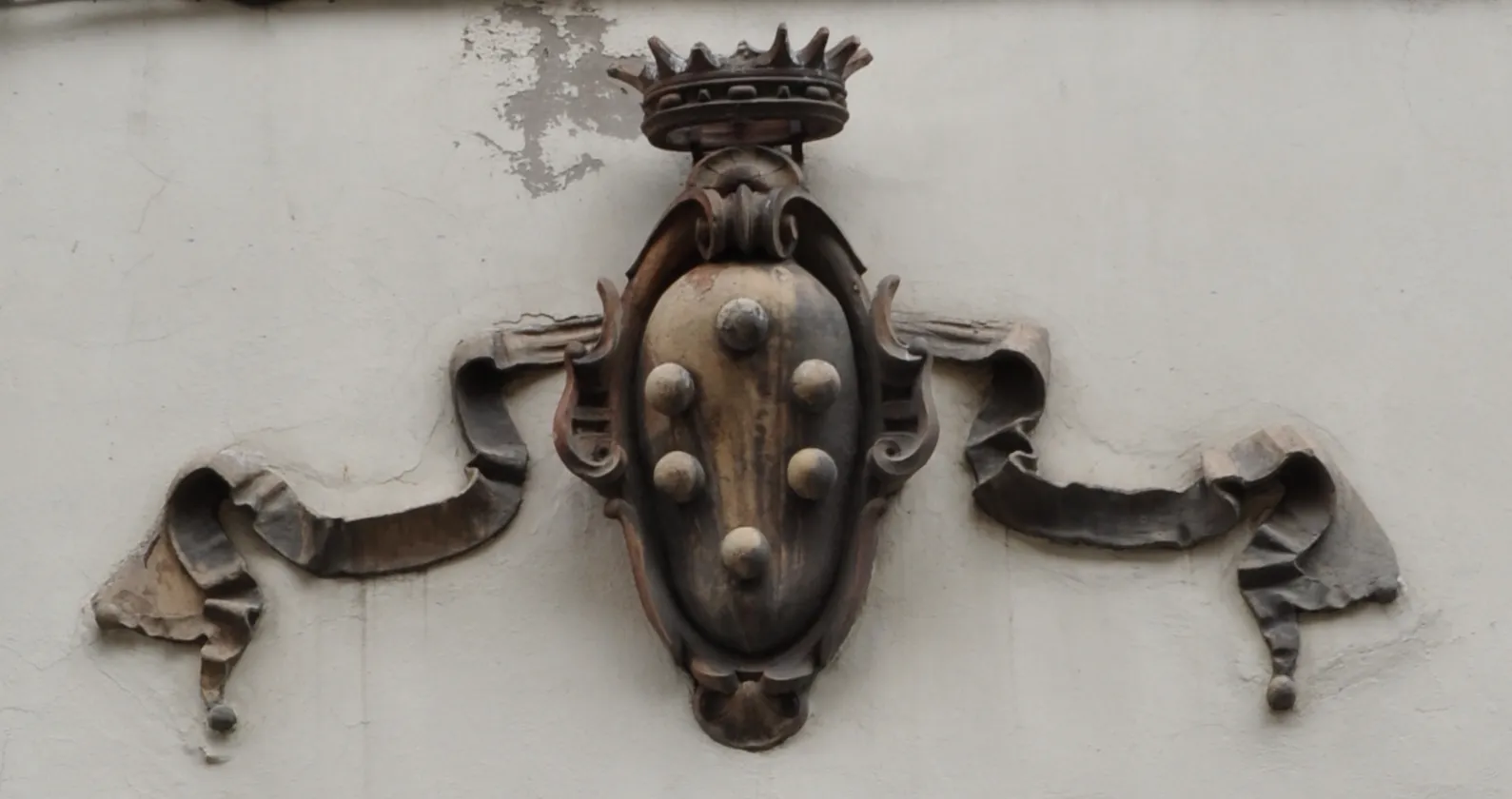 The Medici grand ducal arms, seemingly 16th century, set off by a perhaps later ribbon. (Photo Lyle Goldberg)