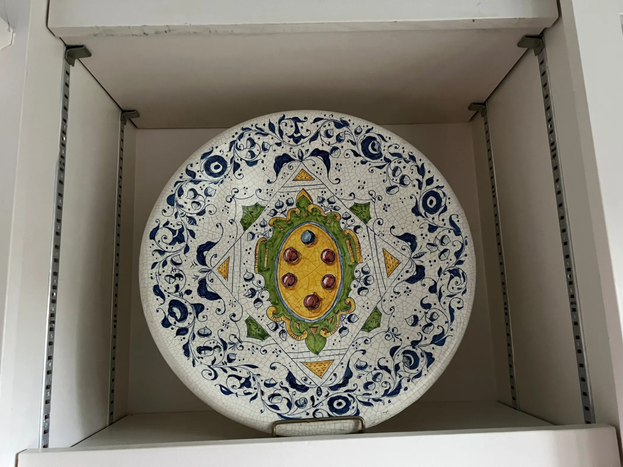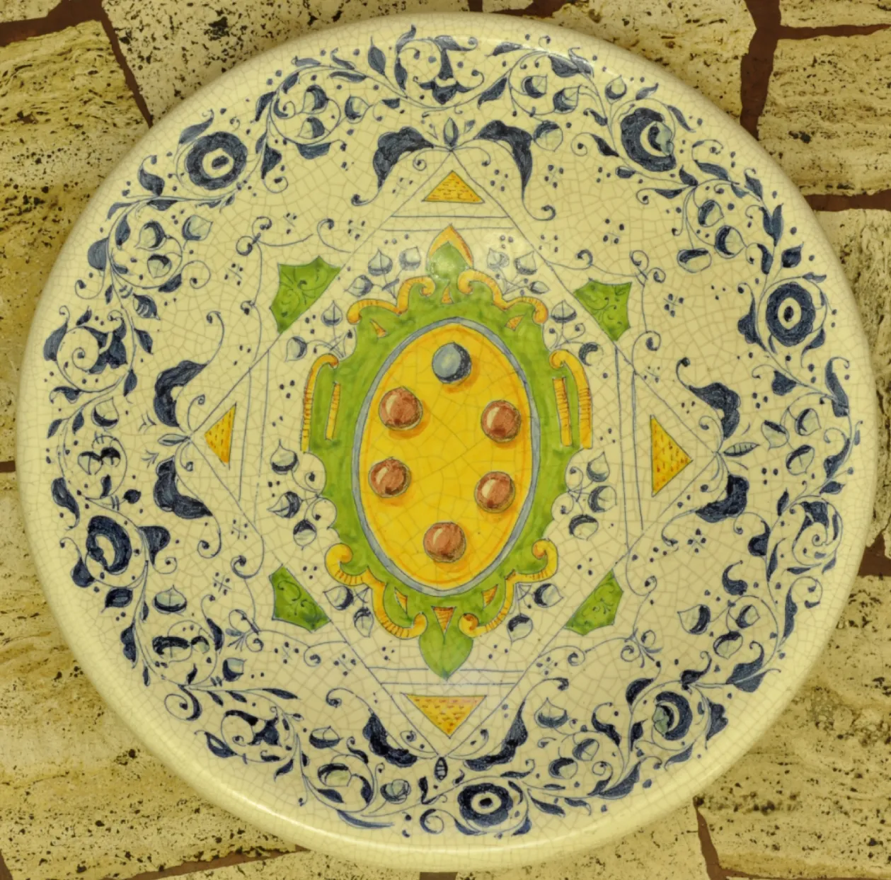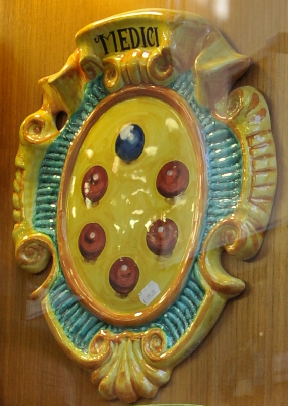 A large pseudo-antique plate in more-or-less majolica with the five tortaux gules...etc. (Photo Lyle Goldberg)