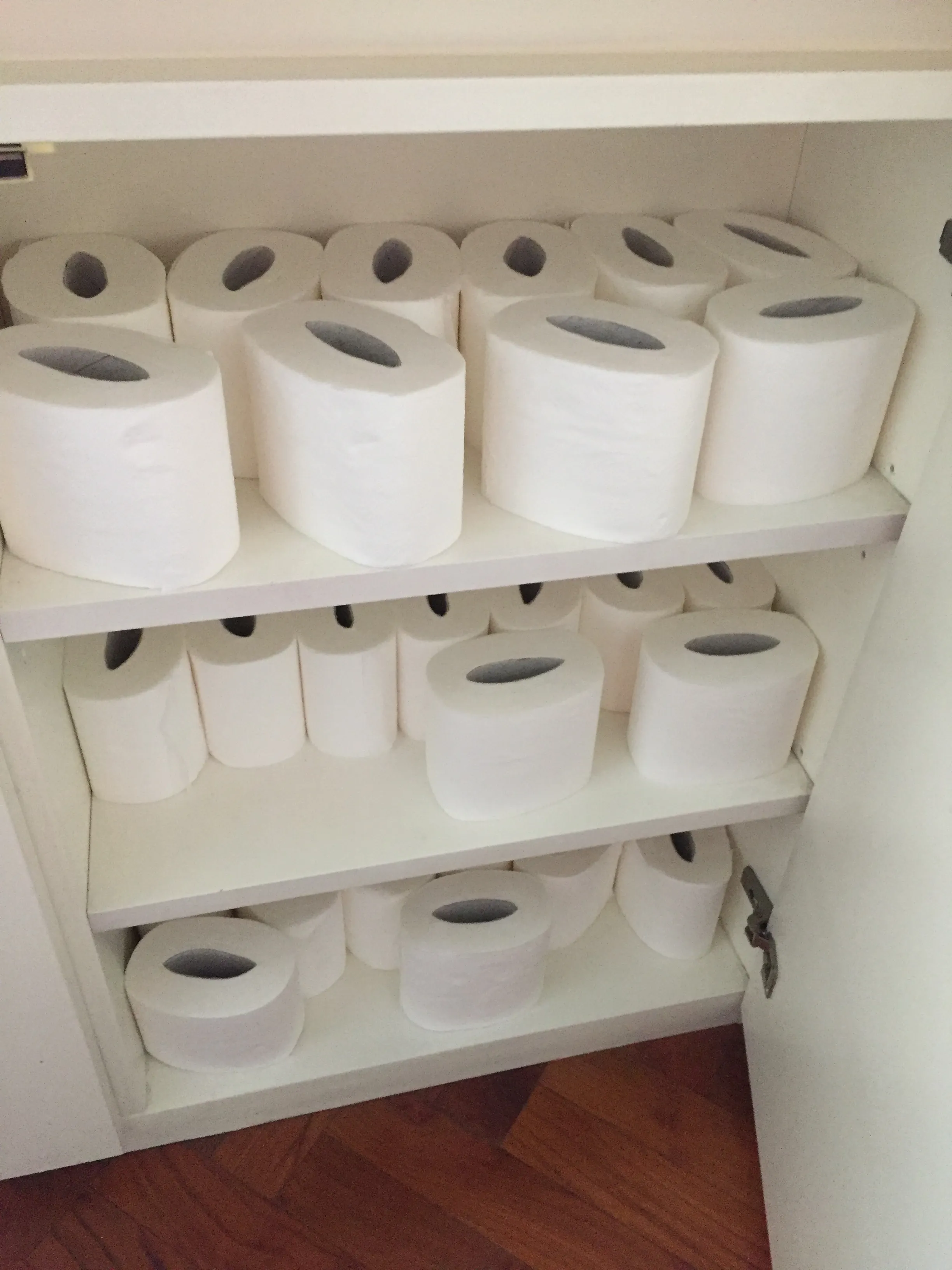 Hoarding toilet paper, a COVID ritual that united peoples around the world. (March 19, 2020; Photo Edward Goldberg)