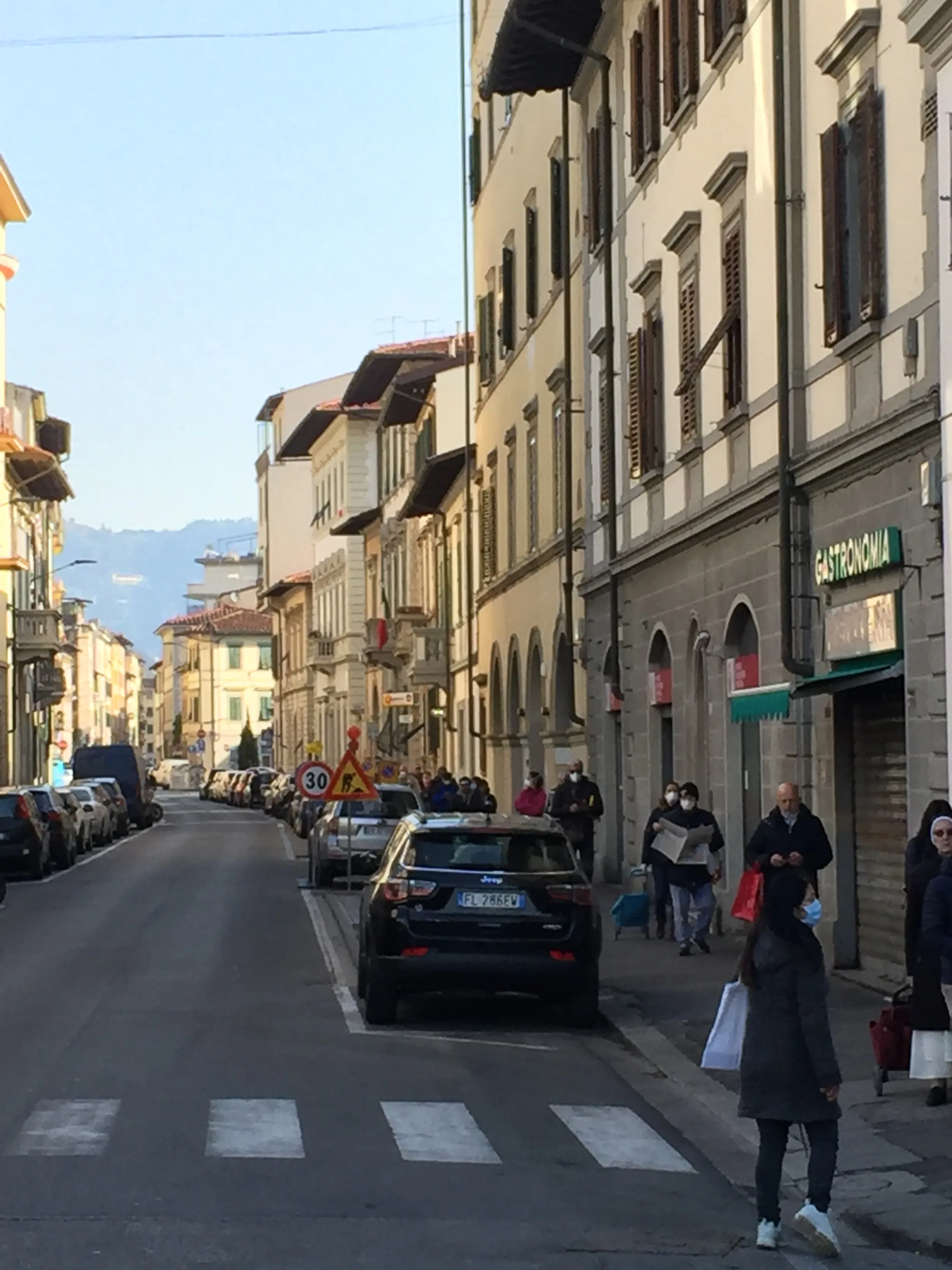 How crazy did that sound?! I normally loathe enforced waiting as much as any Florentine but at that moment, socially-distanced loitering was the best available excuse for being outdoors with no questions asked.