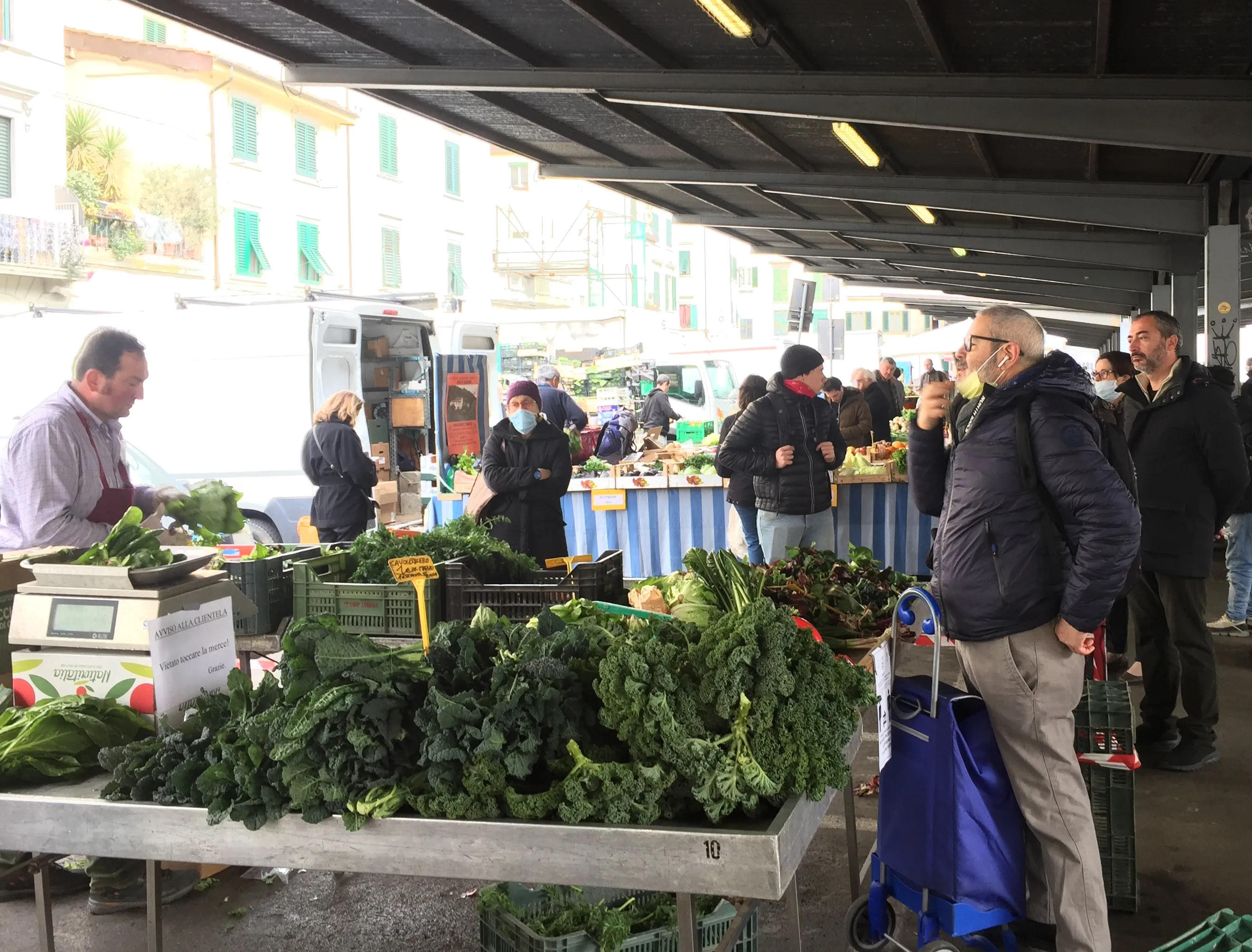 A dazzling array of local winter cabbage at the Mercato di Sant'Ambrogio, a traditional staple for Tuscan soups. (March 13, 2020; Photo Edward Goldberg)
