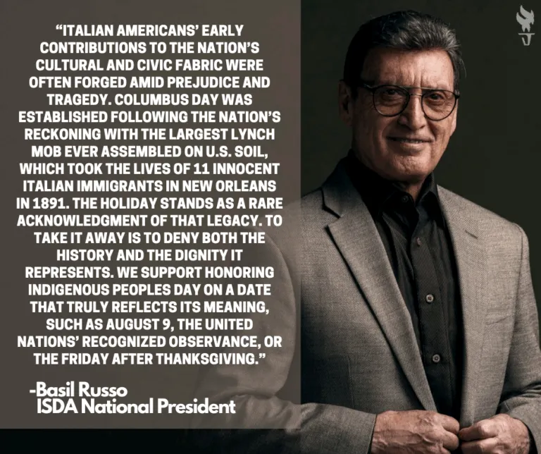 "Things have not always been easy; prejudice and violence often stalled the promise of equal opportunity. In fact, Columbus Day was created by President Harrison in 1892 in response to the anti-Italian motivated lynching of 11 Italian Americans in New Orleans in 1891. During World War II, Italian Americans were even targeted as enemy aliens."
