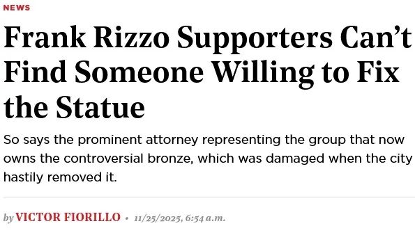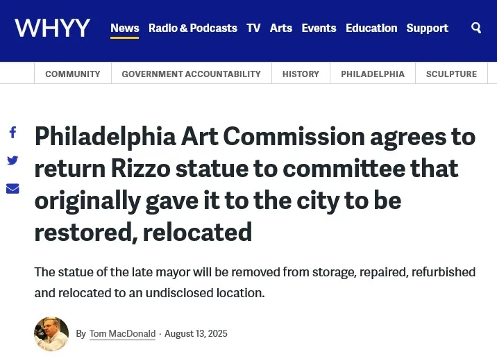 As the Philadelphia Art Commission determined on August 13, 2025, the city's only option was to deaccession the RIzzo Statue from the civic collection and return it to the Committee— after repairing the damage inflicted by city employees during its chaotic removal during the Black Lives Matter riots of 2020.